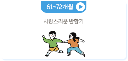 사랑스럽고 순응적이며 호의적이었던 아기가 ‘싫어’, ‘아니야’라는 말을 반복하며 독립심을 보이기 시작하는 시기입니다. 자신의 새로운 능력을 보이고 싶어 하고 위험한 행동에도 거침이 없어서 한시도 눈을 떼지 못하는 시기입니다.